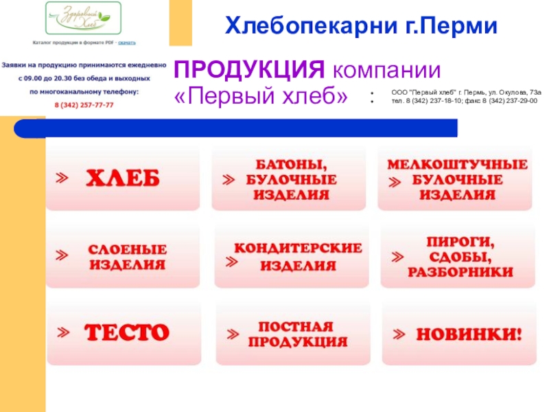 Слайд 13ПРОДУКЦИЯ компании «Первый хлеб»