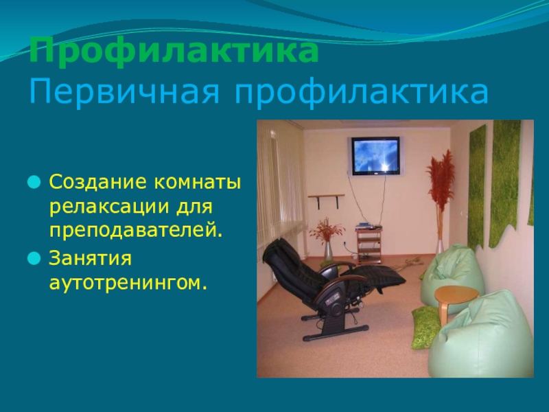 уменьшение воздействия психо-эмоциональных нагрузок, отрицательных эмоций и др.;