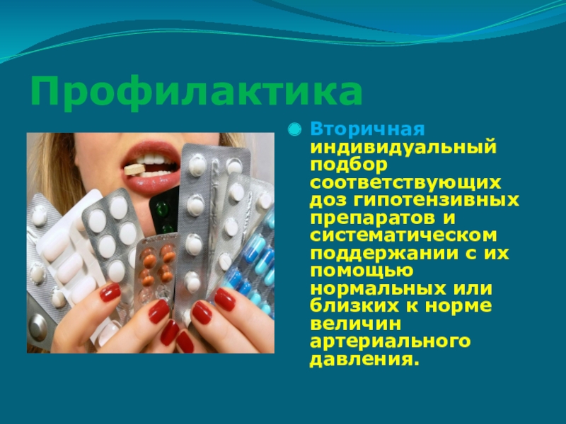 Вторичная индивидуальный подбор соответствующих доз гипотензивных препаратов и систематическом поддержании с