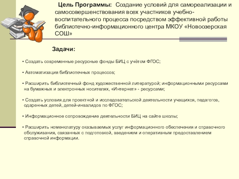 Создать современные ресурсные фонды БИЦ с учётом ФГОС;