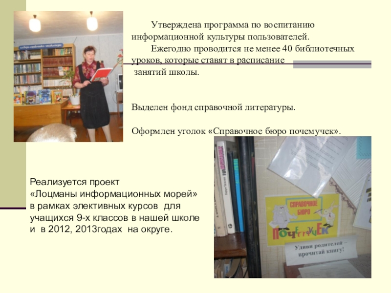 «Лоцманы информационных морей» в рамках элективных курсов для учащихся 9-х классов в нашей школе и в 2012, 2013годах на округе.