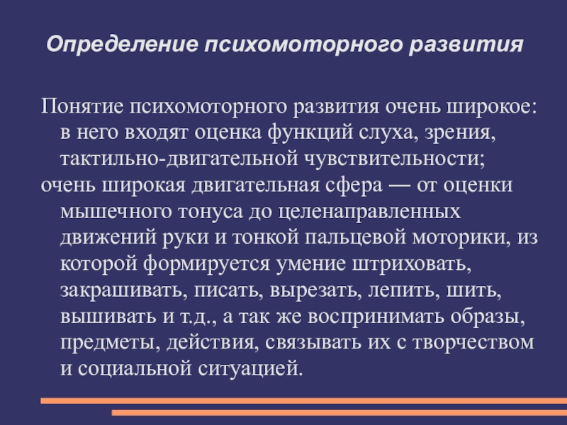 Понятие психомоторного развития очень широкое: в него входят оценка