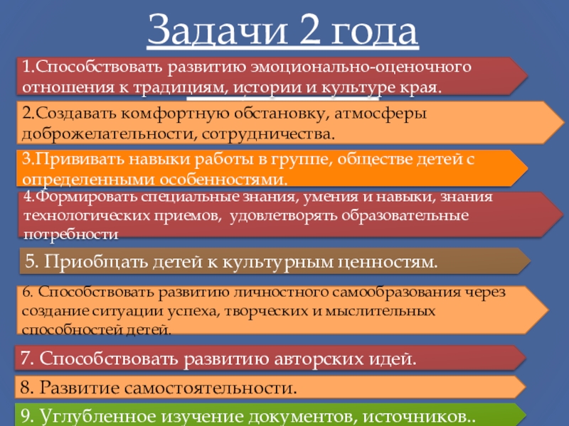 Цель 2-го года обучения – освоение необходимых основ теории для развития творческой инициативы; развитие определенных качеств личности