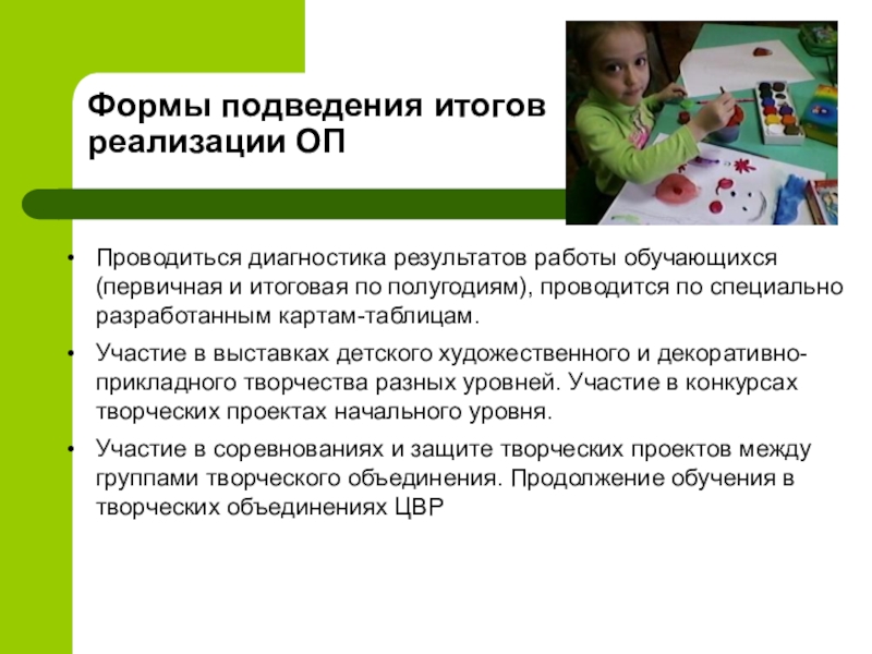 Слайд 9Формы подведения итогов реализации ОП