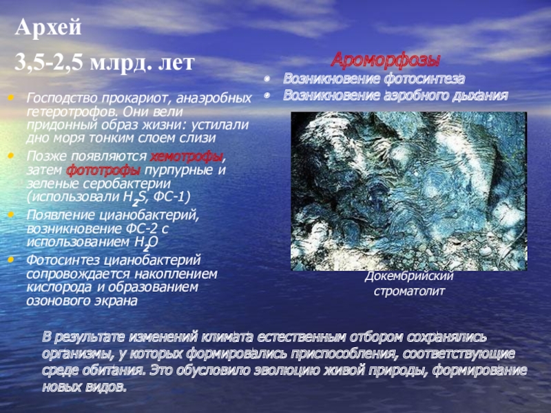 В результате изменений климата естественным отбором сохранялись организмы, у которых формировались приспособления, соответствующие среде обитания. Это обусловило эволюцию живой природы, формирование новых видов.