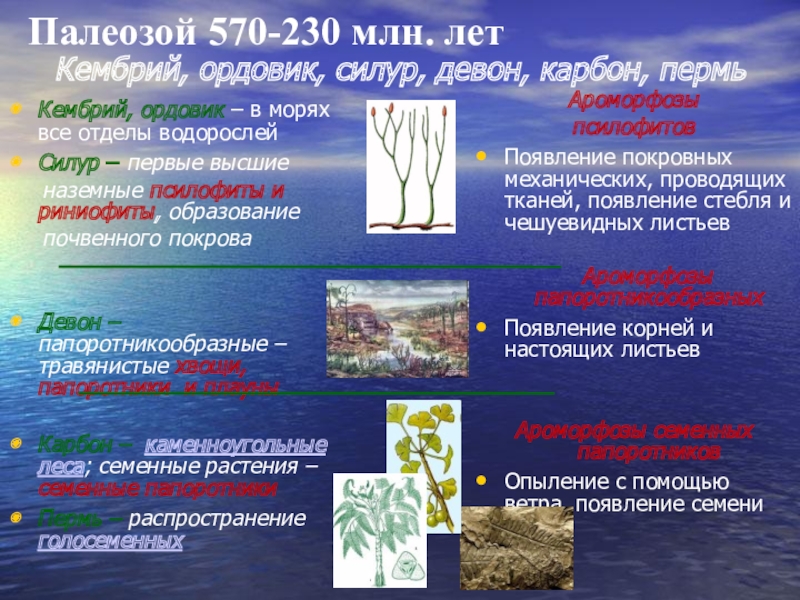 Появление покровных механических, проводящих тканей, появление стебля и чешуевидных листьев