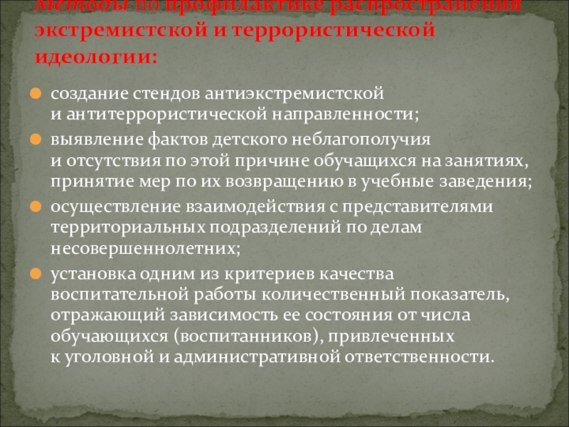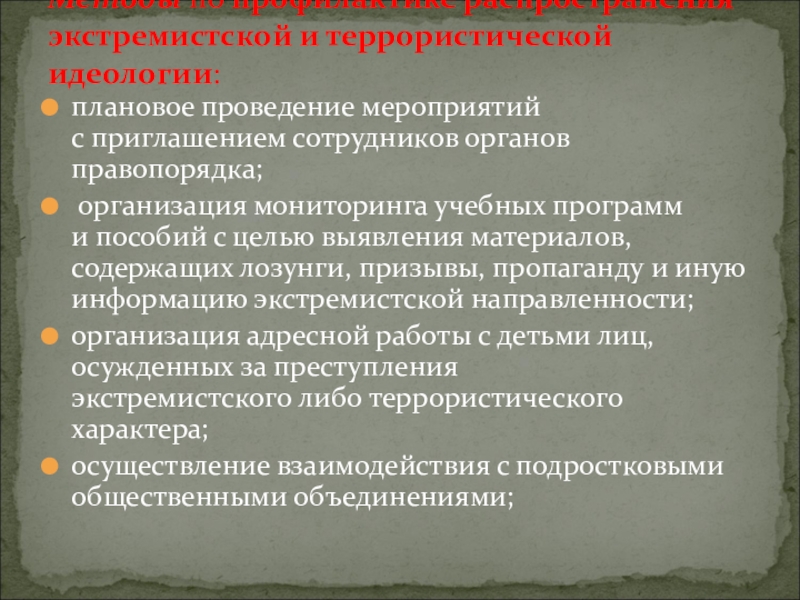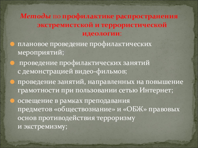 Методы по профилактике распространения экстремистской и террористической идеологии: