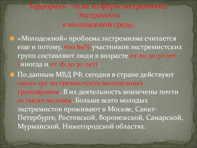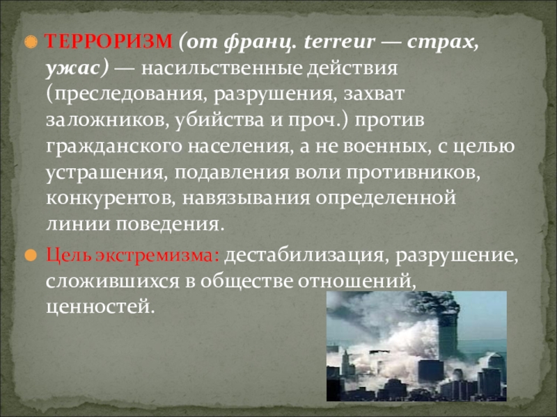 Терроризм - одна из форм экстремизма. Экстремизм