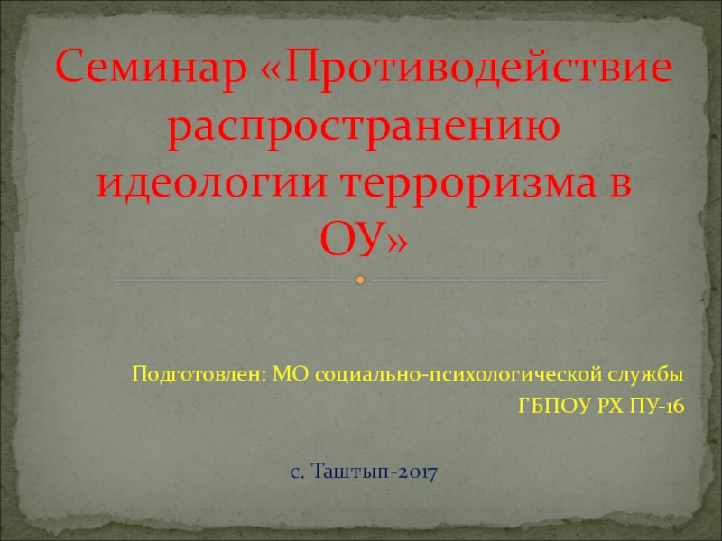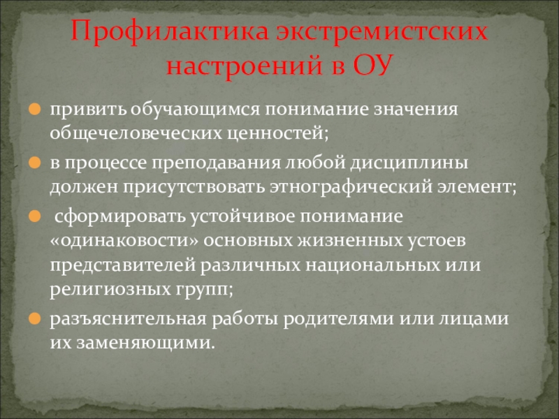 Профилактика экстремистских настроений в ОУ