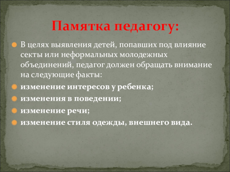 Памятка педагогу: