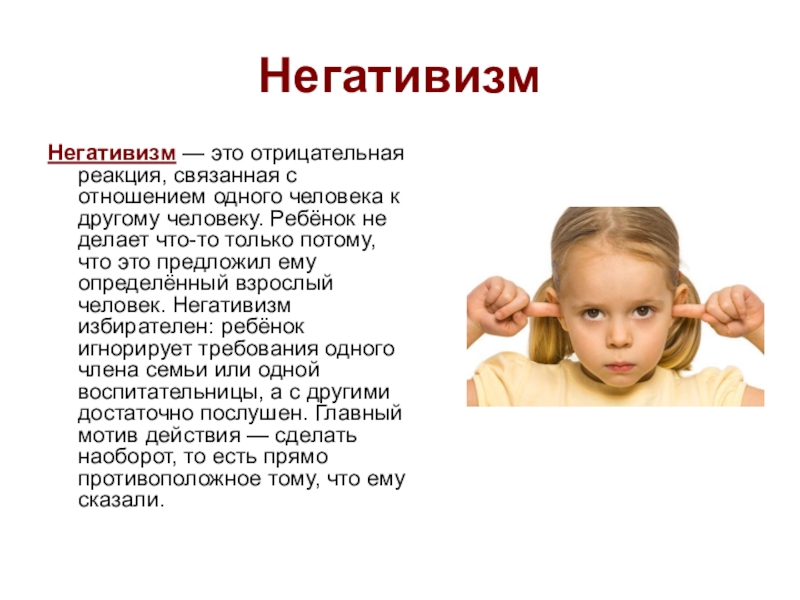 Слайд 5Негативизм