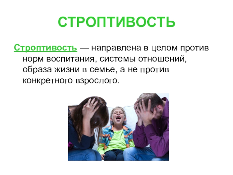 Строптивость — направлена в целом против норм воспитания, системы отношений, образа