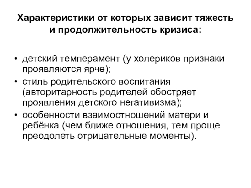 Слайд 3Характеристики от которых зависит тяжесть и продолжительность кризиса: