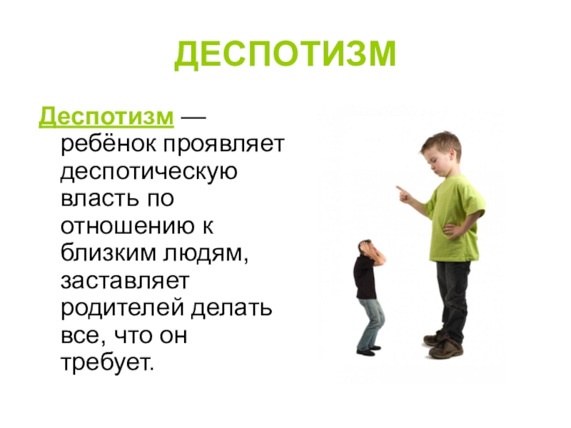 Деспотизм — ребёнок проявляет деспотическую власть по отношению к близким людям,