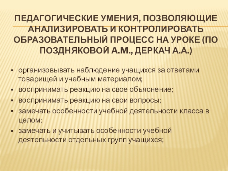 замечать взаимосвязь своей деятельности и деятельности учащихся;