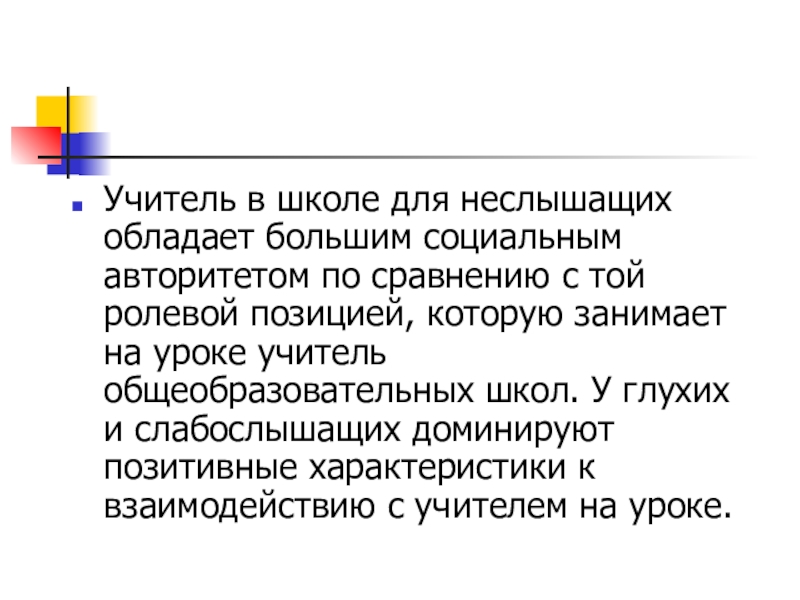 Слайд 21Учитель в школе для неслышащих обладает большим социальным авторитетом по сравнению