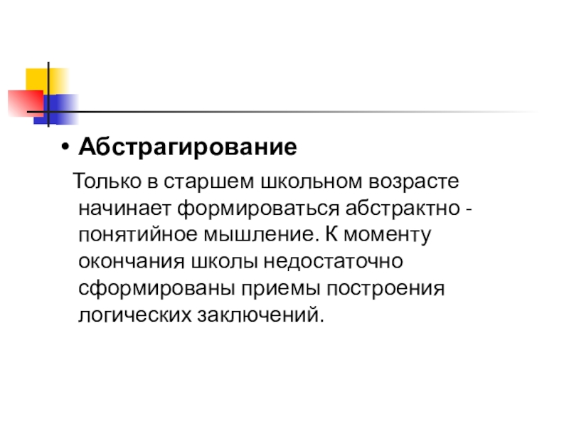 Только в старшем школьном возрасте начинает формироваться абстрактно