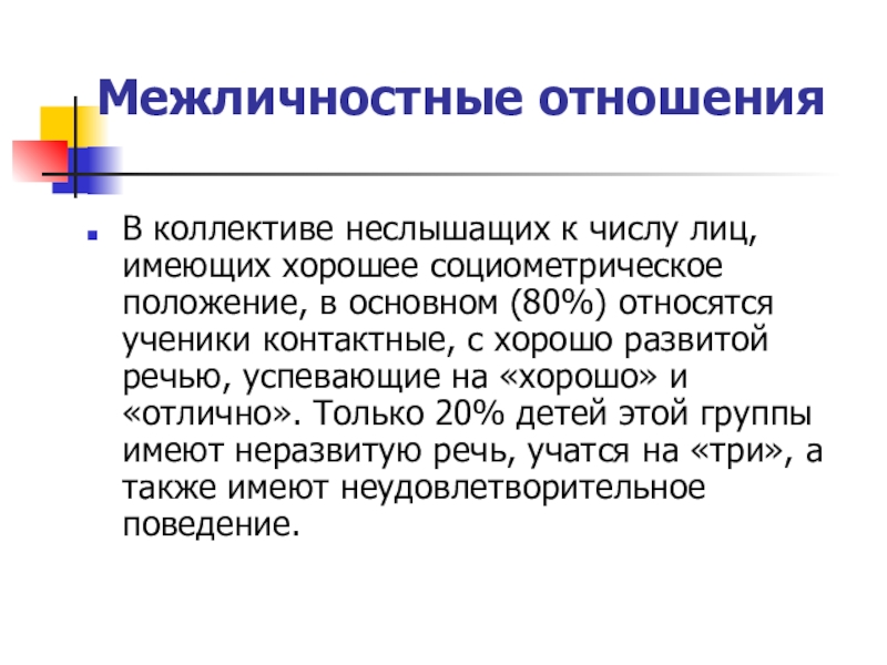 В коллективе неслышащих к числу лиц, имеющих хорошее социометрическое