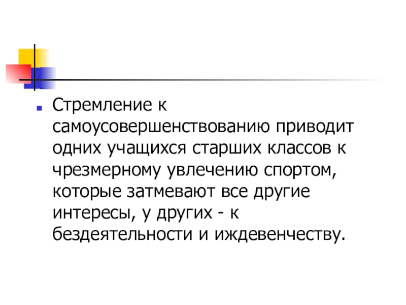 Слайд 20Стремление к самоусовершенствованию приводит одних учащихся старших классов к чрезмерному увлечению