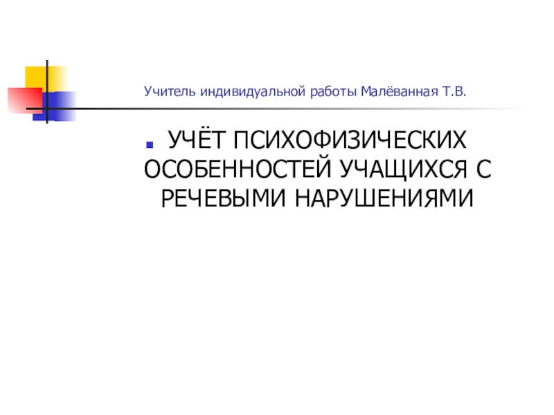 Малёванная Т.В. «Учёт психофизических особенностей учащихся с речевыми нарушениями»