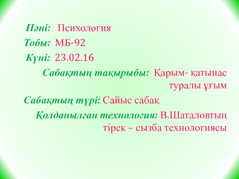 Слайд 2 Пәні: Психология