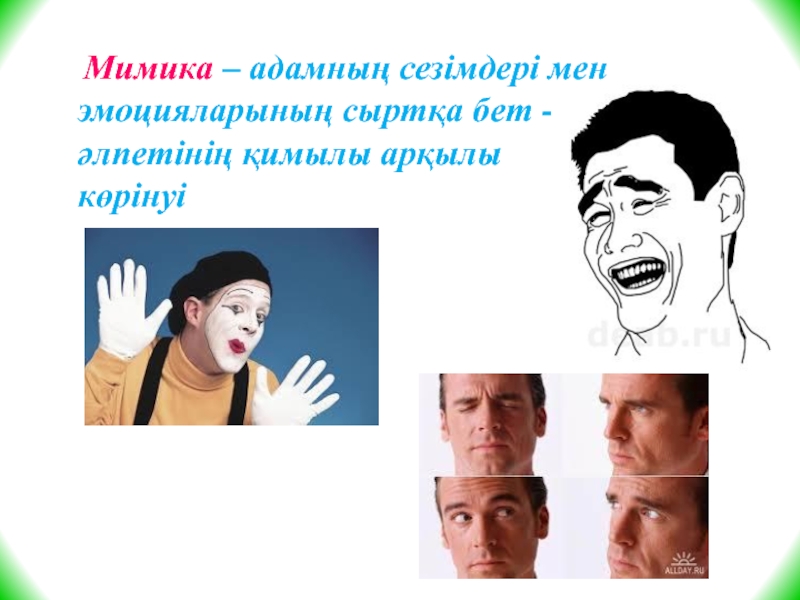 Слайд 22 Мимика – адамның сезімдері мен эмоцияларының сыртқа бет -