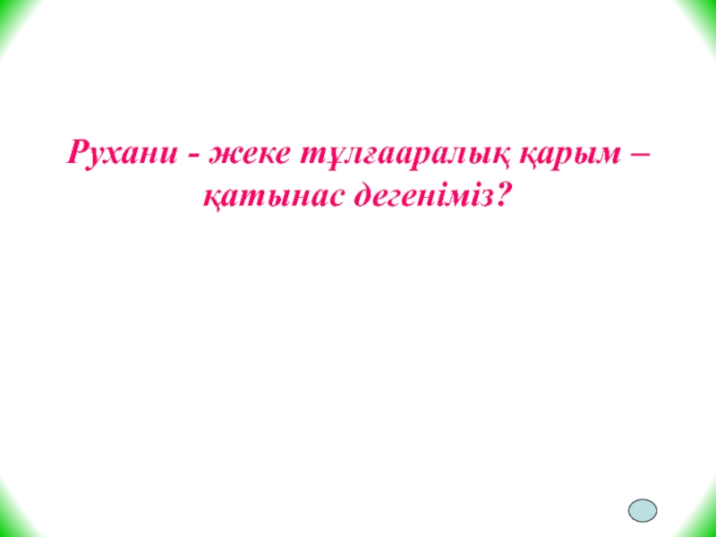 Слайд 46Рухани - жеке тұлғааралық қарым – қатынас дегеніміз?