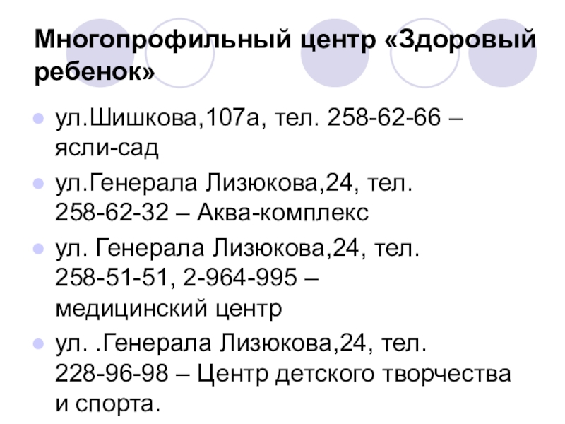 ул. Генерала Лизюкова,24, тел. 258-51-51, 2-964-995 – медицинский центр