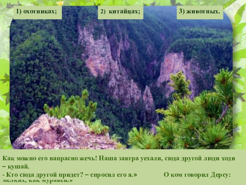 - Кто сюда другой придет? – спросил его я.» О ком говорил Дерсу:
