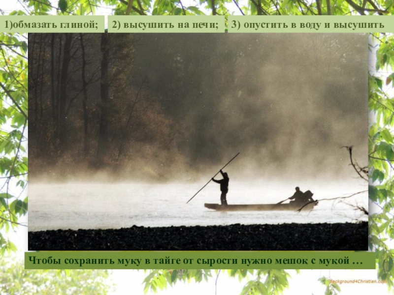 Чтобы сохранить муку в тайге от сырости нужно мешок с мукой …