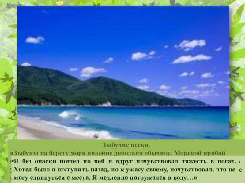 Я без опаски пошел по ней и вдруг почувствовал тяжесть в ногах. Хотел было я отступить назад, но к ужасу своему, почувствовал, что не могу сдвинуться с места. Я медленно погружался в воду…»
