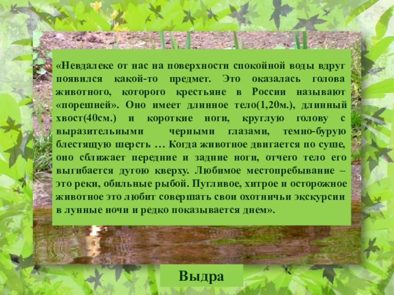 «Когда мы подошли к реке, было уже около двух часов пополудни. Со стороны моря дул сильный ветер. Волны с шумом бились о берег и с пеной разбегались по песку. От реки в море тянулась отмель.