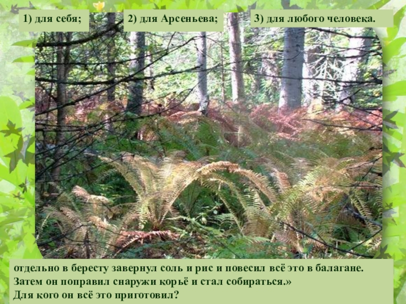 отдельно в бересту завернул соль и рис и повесил всё это в балагане. Затем он поправил снаружи корьё и стал собираться.»
