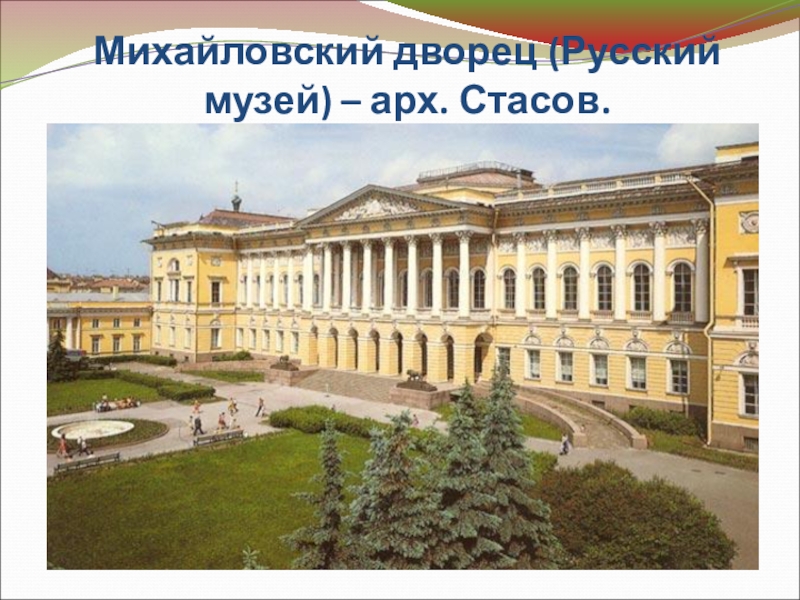Слайд 30Михайловский дворец (Русский музей) – арх. Стасов.