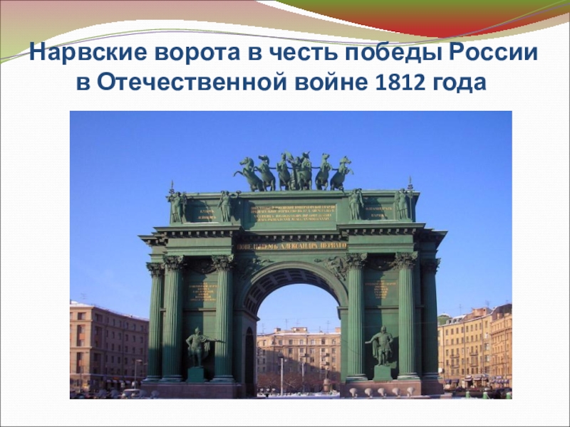Слайд 37Нарвские ворота в честь победы России в Отечественной войне 1812 года