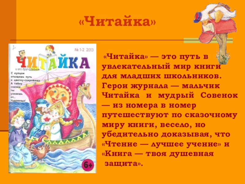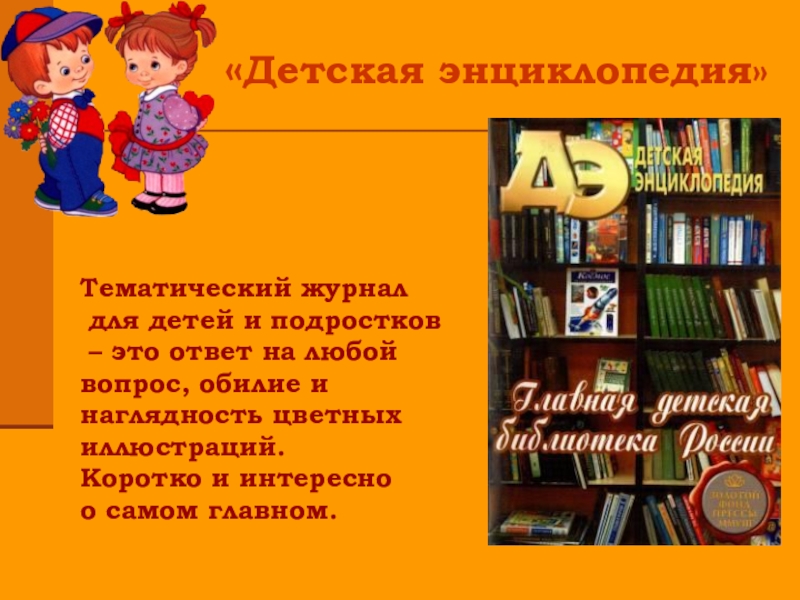 В России первый детский журнал — "Детское чтение для сердца и разума" (1785—89), основанный