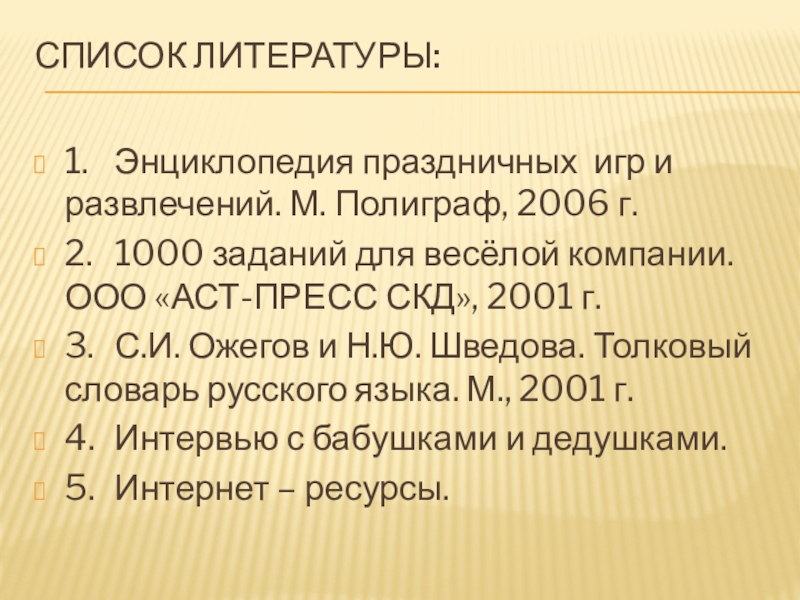 При написании работы мы использовали рассказы мамы, папы, бабушек и дедушек, об играх их детства; находили описание некоторых игр в книгах, обращались к сети Интернет.