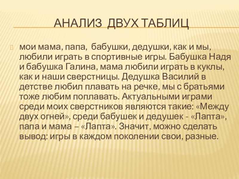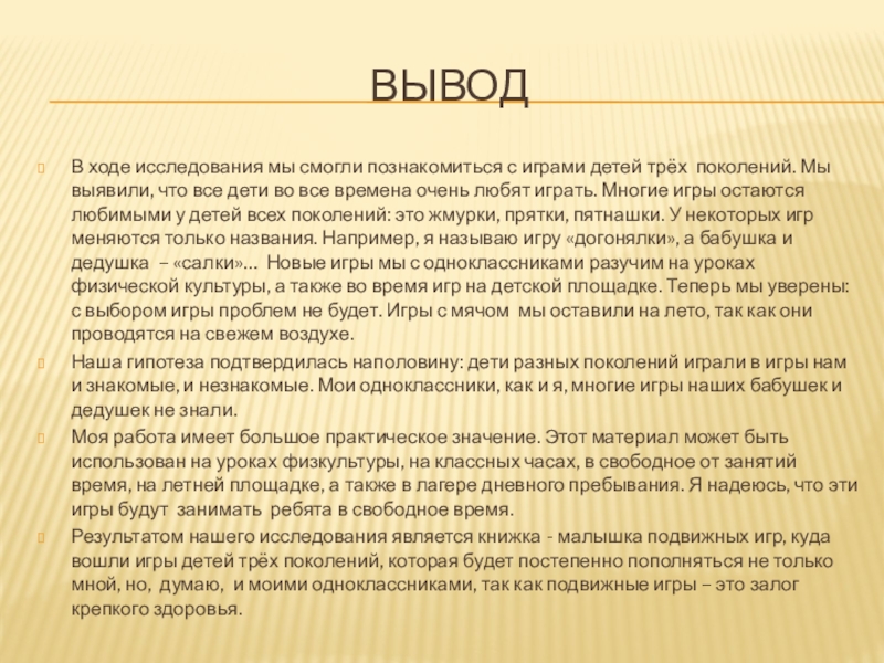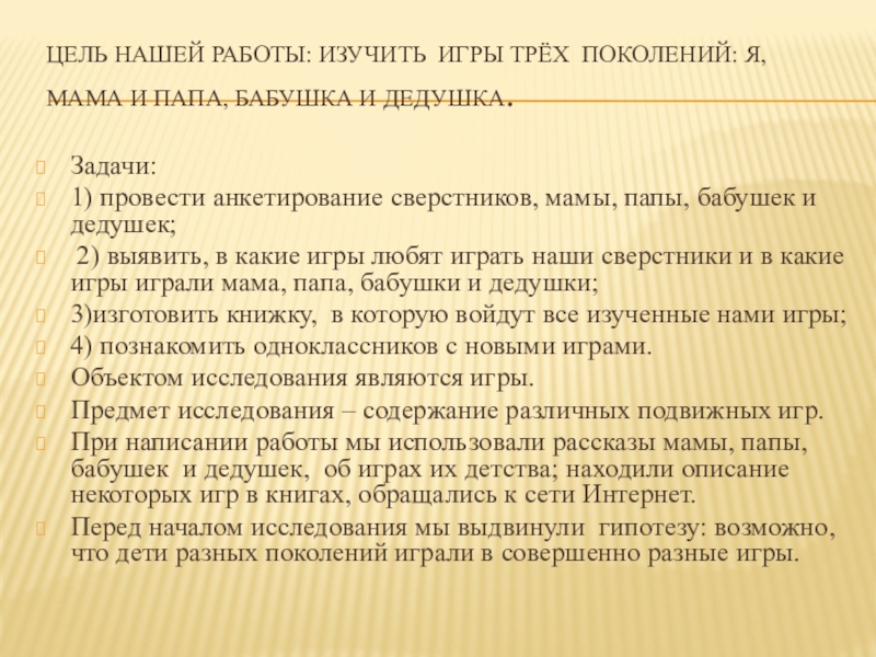Перед началом исследования мы выдвинули гипотезу: возможно, что дети разных поколений играли в совершенно разные игры.