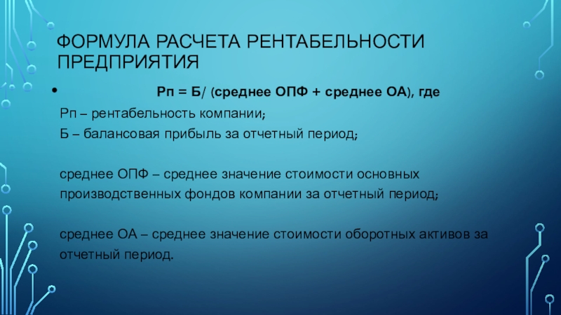 Слайд 14Формула расчета рентабельности предприятия