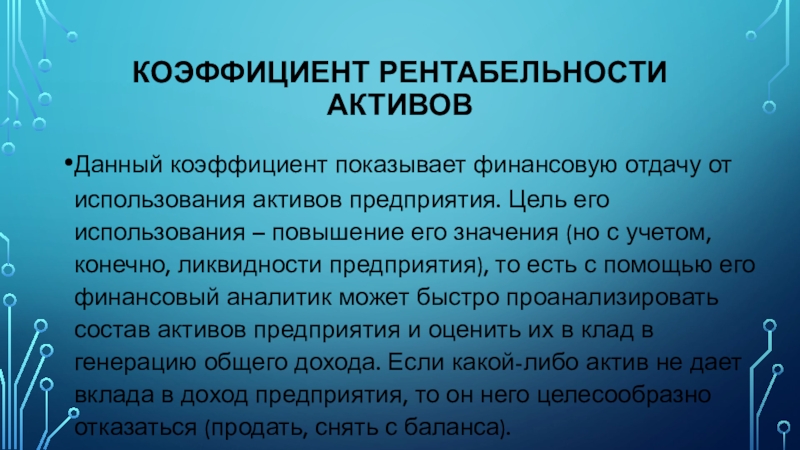 Слайд 7Коэффициент рентабельности активов