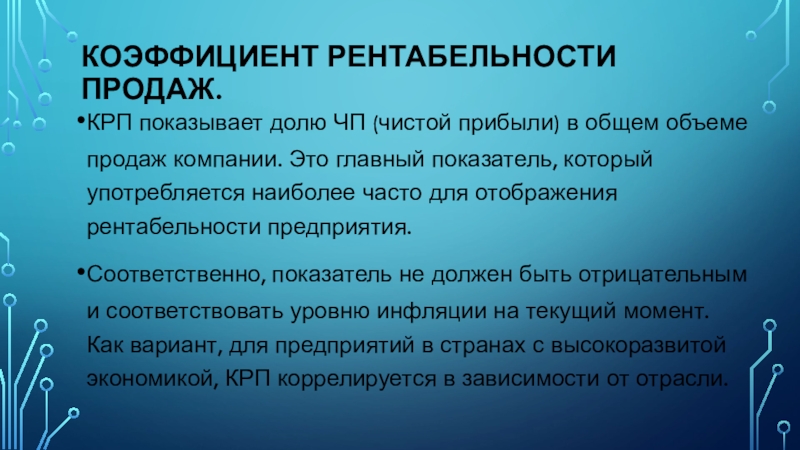 Слайд 4Коэффициент рентабельности продаж.