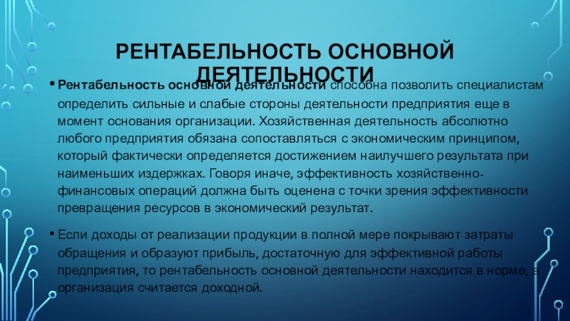 Рентабельность основной деятельности способна позволить специалистам определить сильные и слабые