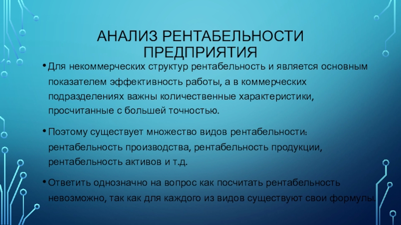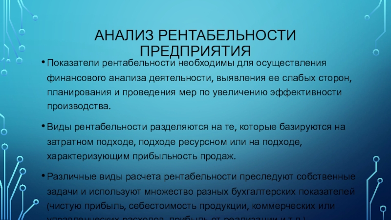 Слайд 3АНАЛИЗ РЕНТАБЕЛЬНОСТИ ПРЕДПРИЯТИЯ