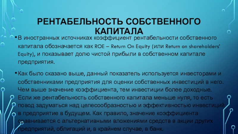 Слайд 9рентабельность собственного капитала