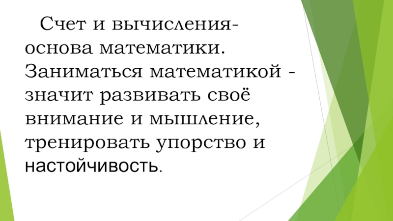 Слайд 5 Счет и вычисления- основа математики. Заниматься математикой - значит развивать