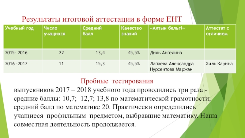 Слайд 26Результаты итоговой аттестации в форме ЕНТ