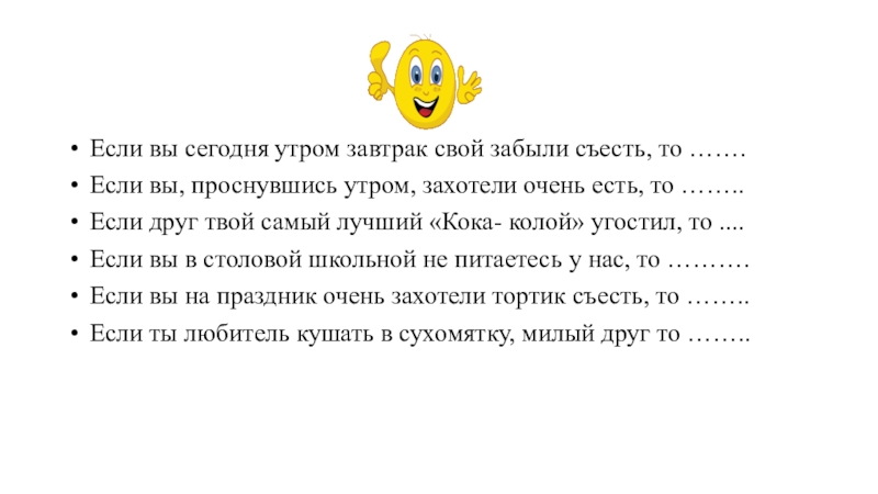 Слайд 9 Если вы сегодня утром завтрак свой забыли съесть, то …….