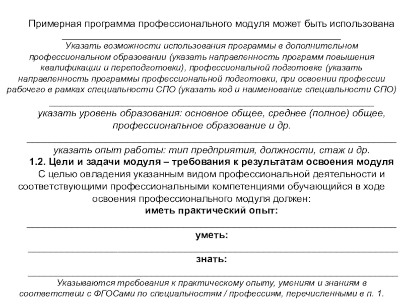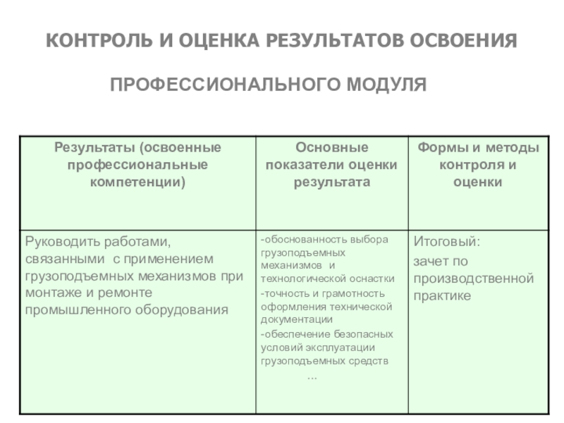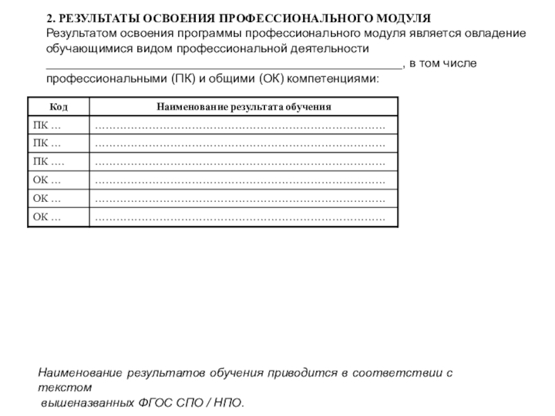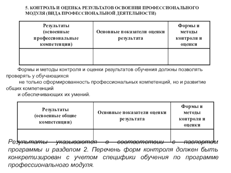 Результаты указываются в соответствии с паспортом программы и разделом 2. Перечень форм контроля должен быть конкретизирован с учетом специфики обучения по программе профессионального модуля.