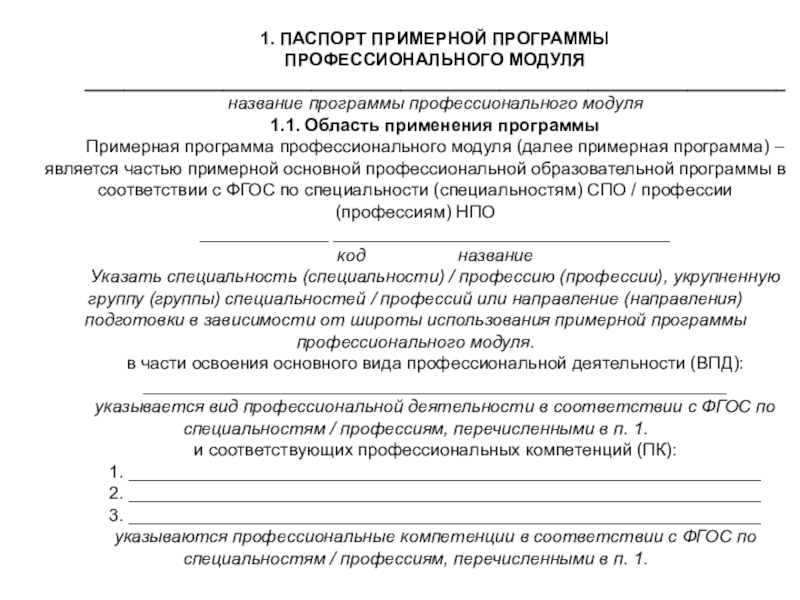 вышеназванных ФГОС СПО / НПО.