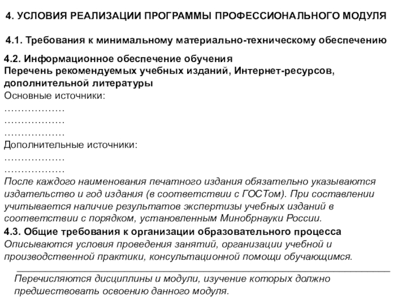Перечисляются дисциплины и модули, изучение которых должно предшествовать освоению данного модуля.